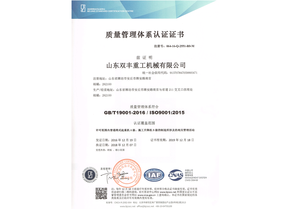 質(zhì)量管理體系認(rèn)證證書