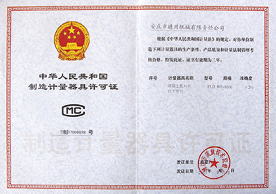 制造計(jì)量器許可證
