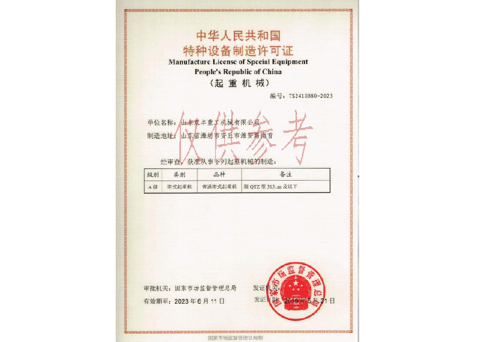特種設(shè)備制造許可證